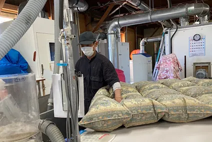 他店で「リフォームできない」と断られてしまった羽毛布団でも、あきらめる前にぜひ一度ご相談ください。羽毛の種類や量、布団の状態によっては、工夫や工程を調整することでリフォームが可能な場合があります。経験と実績を積んだスタッフが丁寧に状態を確認し、最適な方法をご提案。無理な施工は行わず、正直な診断を心がけていますので、まずはお気軽にご相談ください。